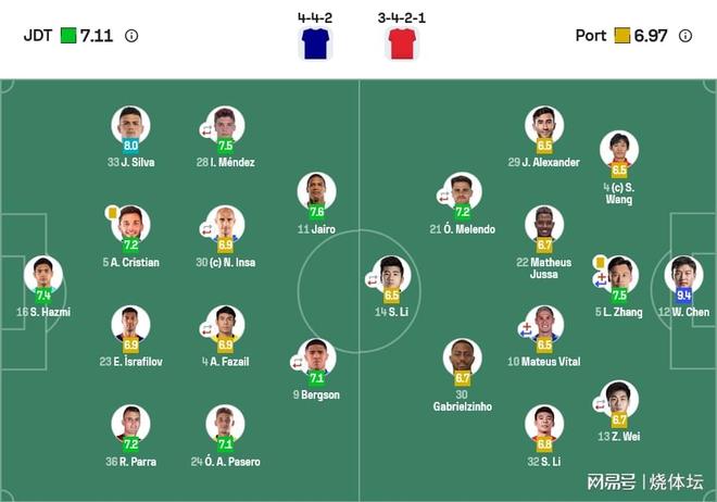 中场:10-维塔尔【43分,20-杨世元】、21-梅伦多【64分,27-冯劲】、22-马修斯·茹萨、14-李圣龙【46分,36-阿布拉汗】